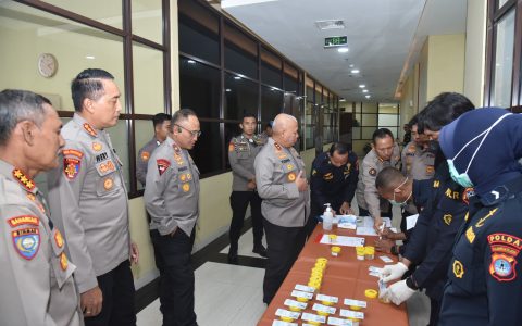 Cegah Pelanggaran, Kapolda, Wakapolda, PJU dan Kapolres Jajaran Polda Kalsel Jalani Tes Urine