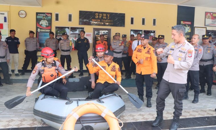 Polres Hulu Sungai Tengah Polda Kalimantan Selatan – Dalam rangka kesiapsiagaan menghadapi potensi bencana hidrometeorologi yang dapat terjadi akibat perubahan cuaca ekstrem, Kapolres HST AKBP Jupri JHP Tampubolon, S.I.K., M.Si. memimpin langsung Apel Gelar Pasukan Tanggap Darurat Bencana Hydrometeorologi yang dilaksanakan di Lapangan Apel Mako Polres HST , Selasa (04/11/2025).Kegiatan yang diikuti Bupati HST Samsul Rizal yang diwakili Sekda Kab. HST, Kajari HST, Dandim 1002/HST / mewakili, Ketua PN HST / mewakili, Kepala BPBD HST, dan peserta personel gabungan dari TNI, Polri, BPBD, Satpol PP, Dinas Kesehatan serta relawan tangguh bencana. Kapolres HST AKBP Jupri JHP Tampubolon, S.I.K., M.Si menyampaikan bahwa Kegiatan ini merupakan bentuk pengecekan terhadap kesiapan personel maupun sarpras dalam pencegahan dan penanggulangan bencana alam, sehingga diharapkan seluruh personel dan stakeholder yang terlibat dapat bersinergi secara sigap, cepat, dan tepat dalam menghadapi berbagai potensi bencana ke depan demi menjamin terlindunginya keamanan dan keselamatan masyarakat.“Kita harus siap siaga dalam menghadapi setiap kemungkinan bencana, baik dari segi personel, peralatan, maupun koordinasi lintas instansi. Dengan kesiapsiagaan yang baik, diharapkan penanganan bencana dapat dilakukan secara cepat, tepat, dan terkoordinasi,” ujar Kapolres.Selain melakukan pemeriksaan pasukan, Kapolres HST juga meninjau secara langsung perlengkapan dan kendaraan taktis yang akan digunakan dalam penanganan darurat bencana, seperti perahu karet, alat evakuasi, dan perlengkapan medis.Kegiatan apel gelar pasukan ini sekaligus menjadi momentum untuk mengingatkan seluruh pihak agar selalu waspada terhadap potensi cuaca ekstrem yang dapat memicu bencana hidrometeorologi, serta memperkuat komitmen bersama dalam menjaga keselamatan masyarakat.Dengan adanya apel ini, diharapkan seluruh unsur terkait dapat bekerja sama secara solid dan cepat tanggap dalam memberikan pelayanan terbaik kepada masyarakat, khususnya dalam menghadapi kondisi darurat bencana di Kab. HST